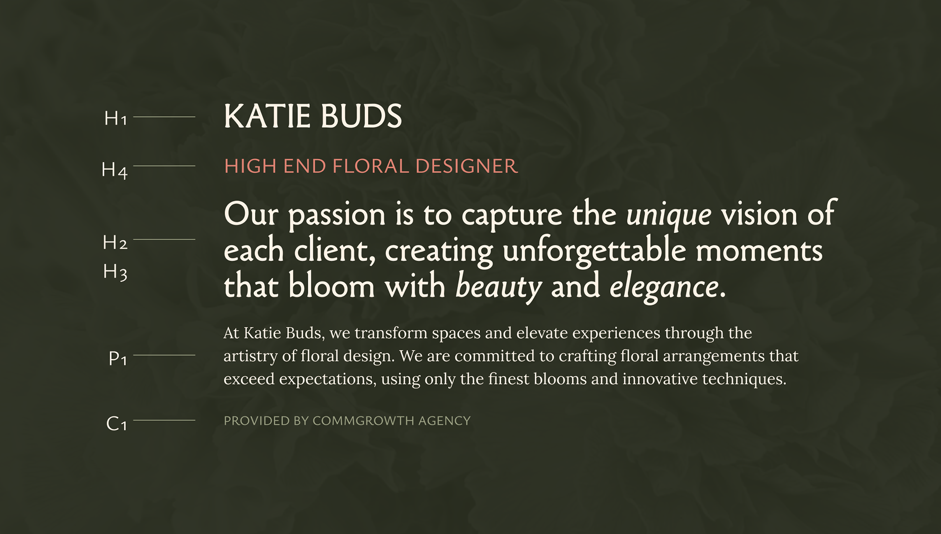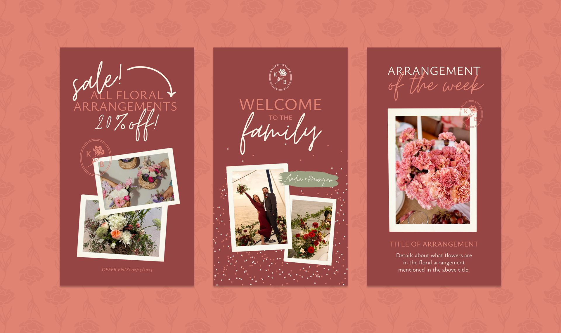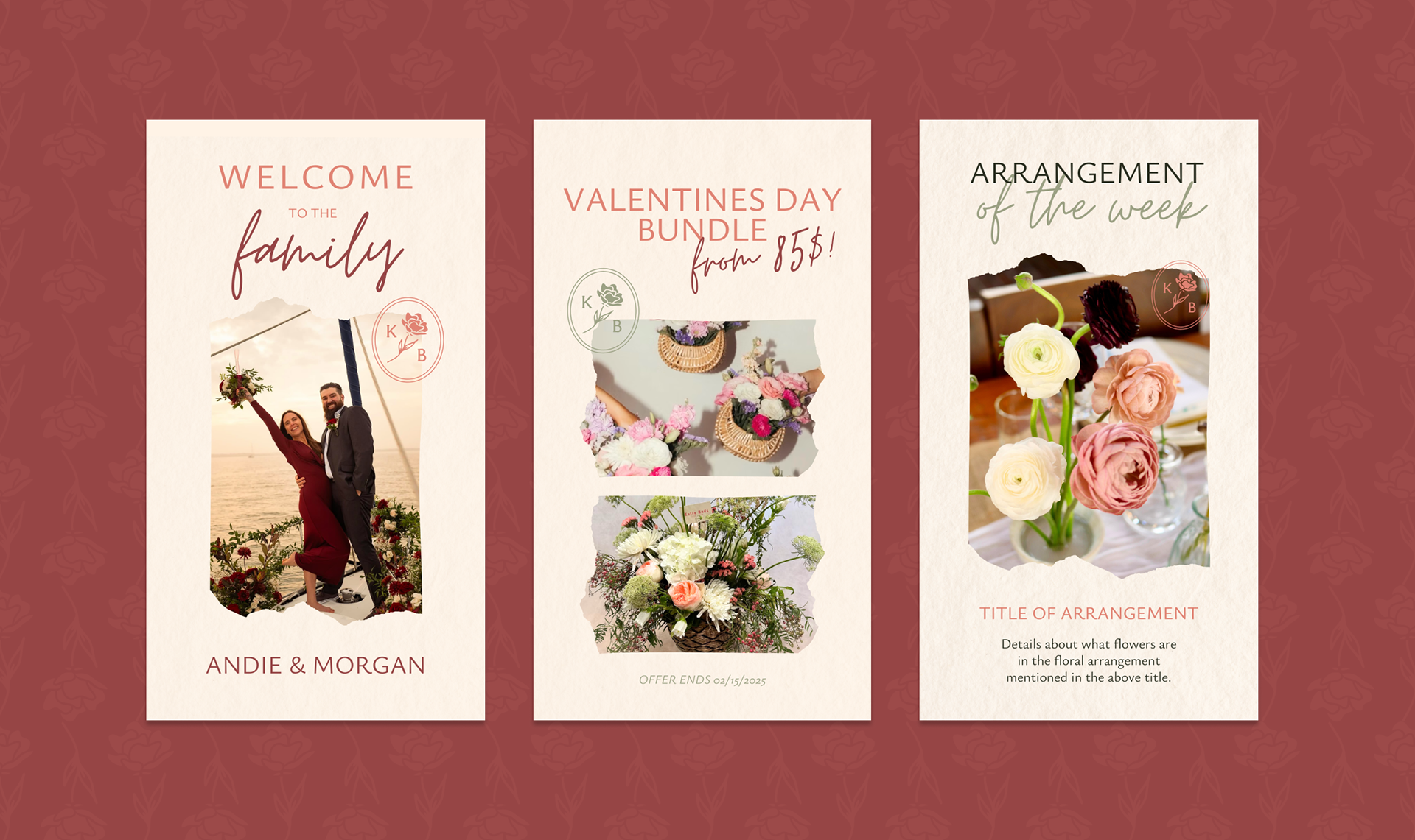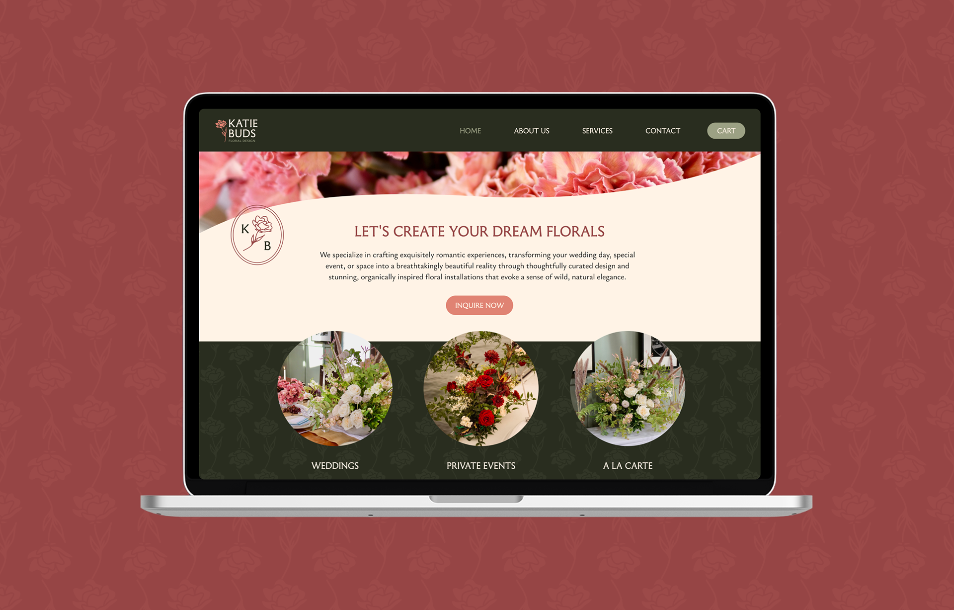 Katie wanted to find the perfect balance for her brand: sophisticated but not too formal. We threw out all the usual, generic floral designs and anchored the entire identity with a custom, hand-drawn rose bud logo. It’s meant to feel really fresh—like that moment of potential right when the bud is opening. The result is a brand that just feels easy to connect with, while still being totally elegant. It lets Katie Buds’ amazing floral work really shine.