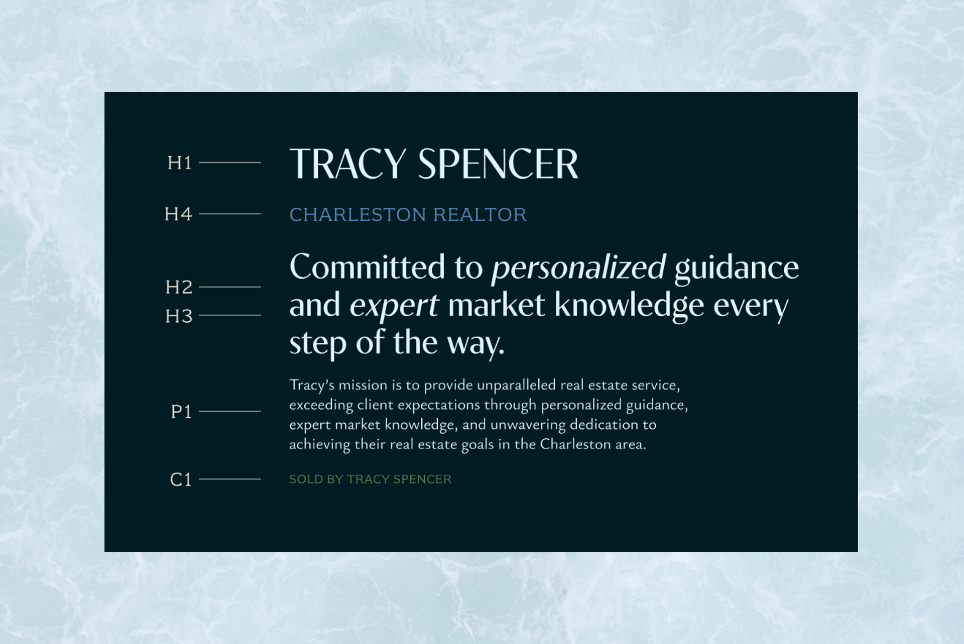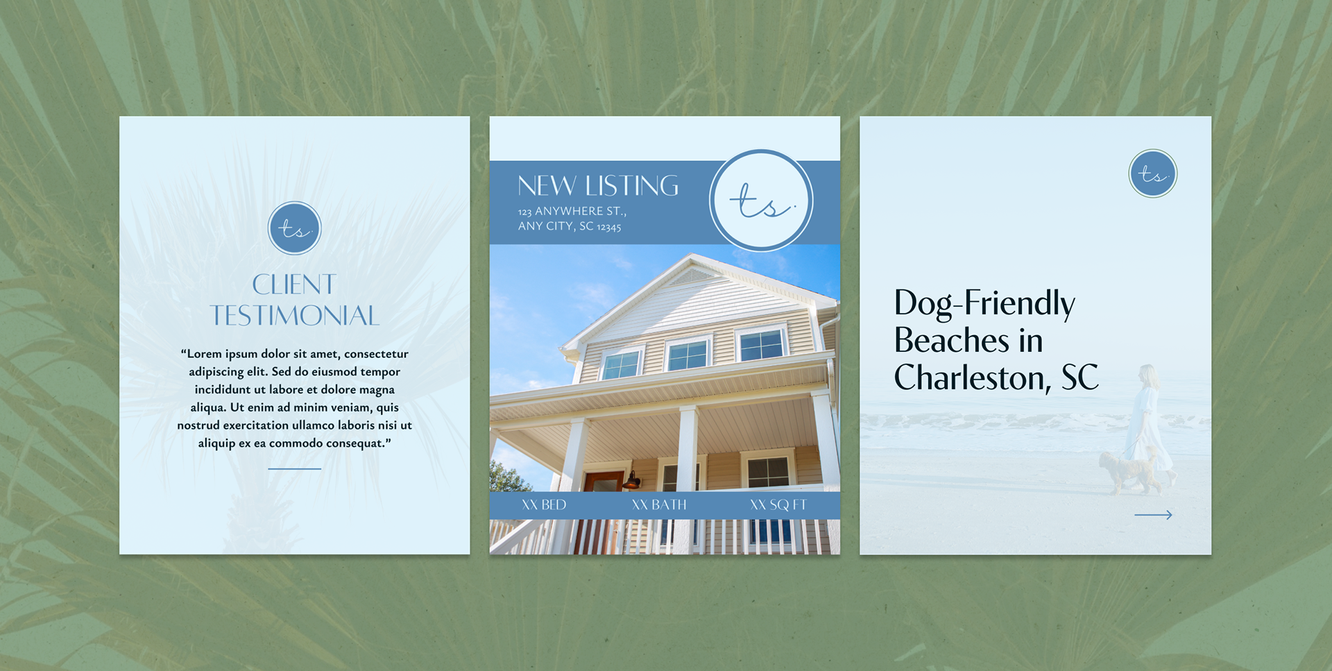 The goal for this branding project was to create a visual identity for Tracy Spencer that was as charming, sophisticated, and memorable as the city of Charleston itself. I crafted a logo, color palette, and typography along with social media templates and a landing page for Tracy to appeal to her dream real estate clients.